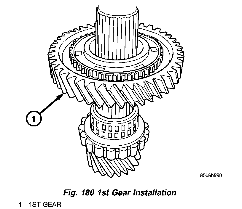 5. Install 1st gear to intermediate shaft (Fig. 180).