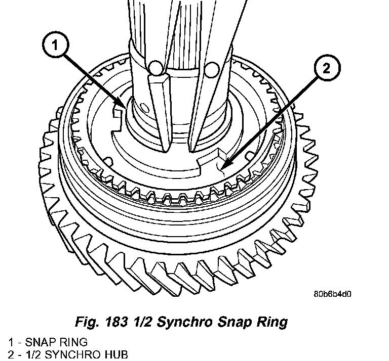 8. Install NEW 1/2 synchro snap ring (Fig. 183).
