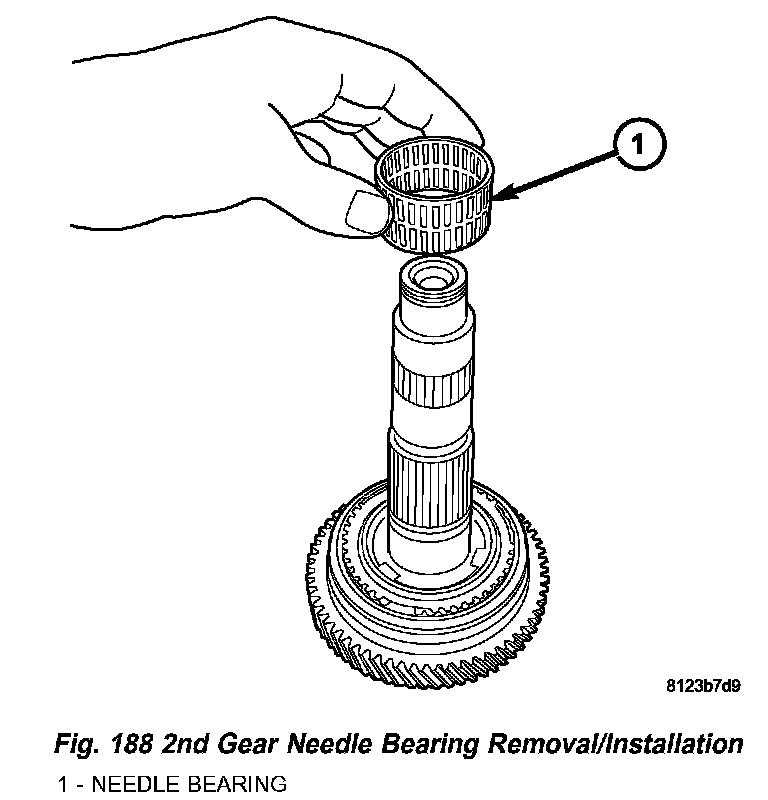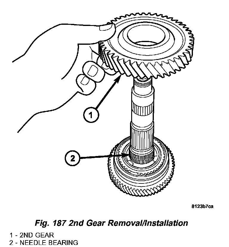12. Install 2nd gear and needle bearing to intermediate shaft (Fig. 187) (Fig. 188).