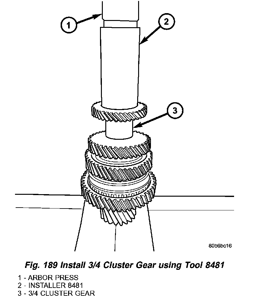 13. Press 3/4 cluster gear onto intermediate shaft using cup 8481 (Fig. 189).