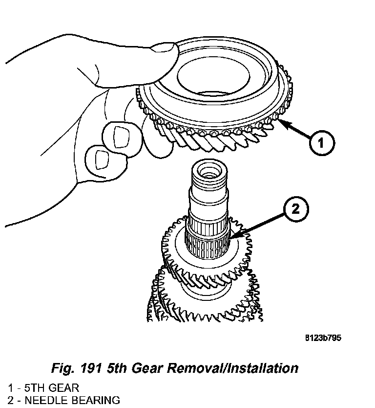 15. Install 5th gear and needle bearing to intermediate shaft (Fig. 191) (Fig. 192).