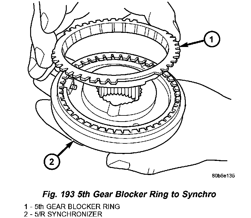 16. Install 5th gear blocker ring to synchronizer (Fig. 193).