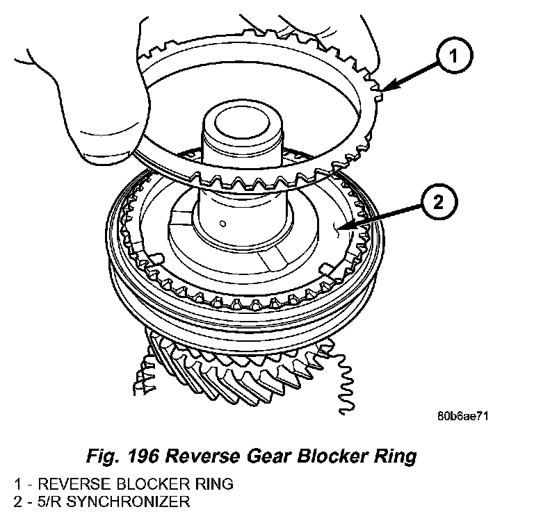 19. Install reverse gear blocker ring (Fig. 196).
