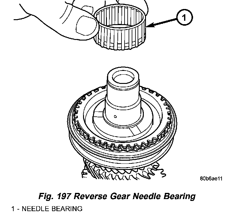 20. Install reverse gear needle bearing (Fig. 197).