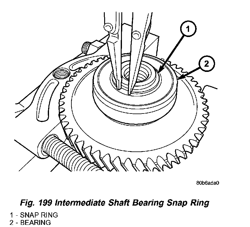 23. Install NEW intermediate shaft sealed bearing snap ring (Fig. 199).