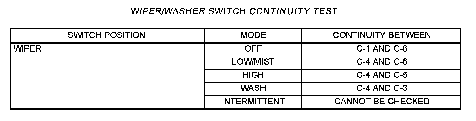 Wiper Switch: Testing and Inspection