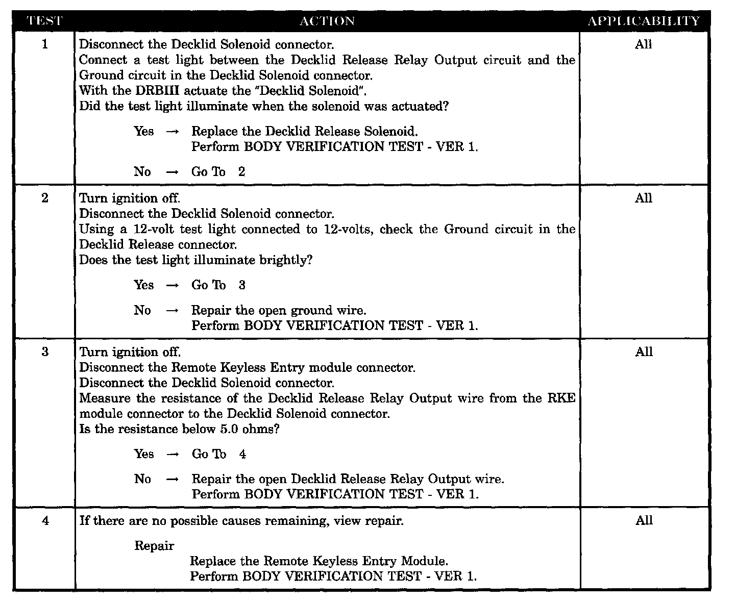 Decklid Solenoid Inoperative