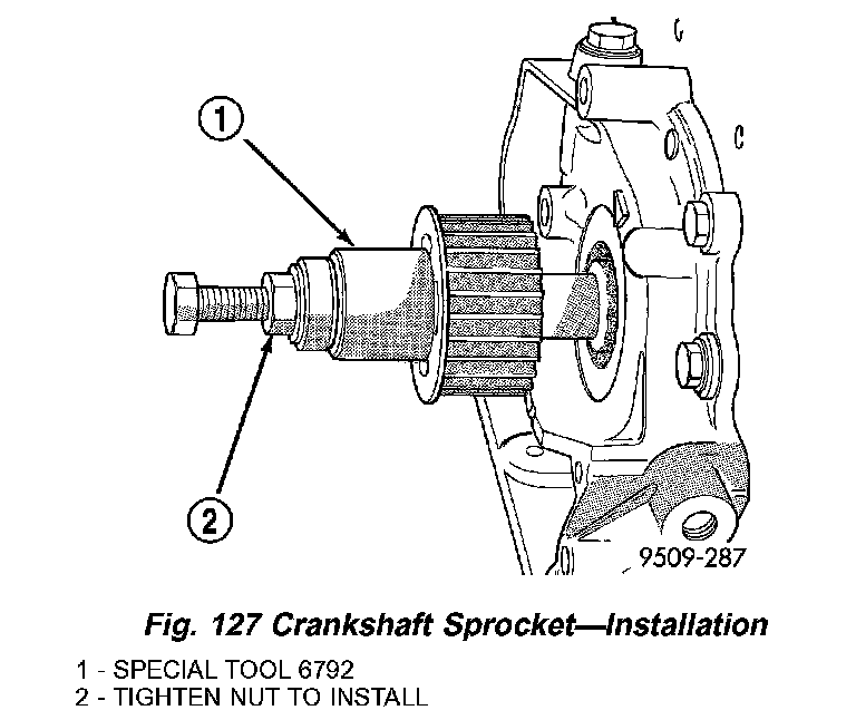 7. Install crankshaft sprocket, using Special Tool 6792 (Fig. 127).