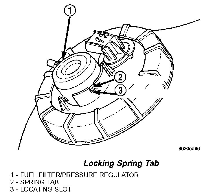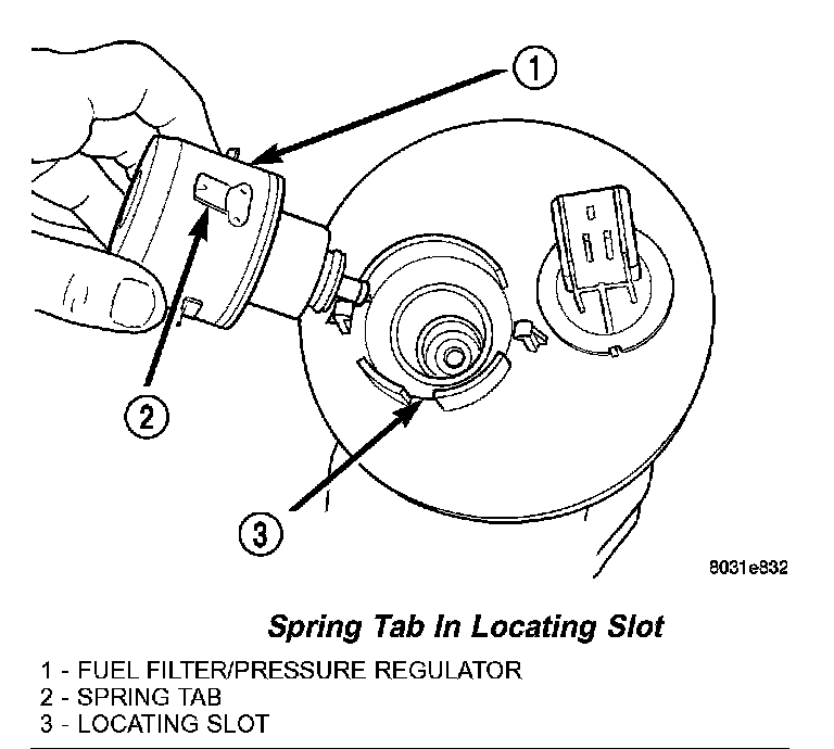 1. Refer to Fuel System Pressure Release in the Fuel Delivery System section of this group. The fuel filter/fuel pressure regulator is located on the top of fuel pump module. Fuel pump module removal is not necessary.