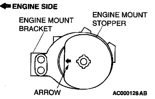 Clamp the engine mount stopper so that the arrow points in the direction as shown in the diagram.