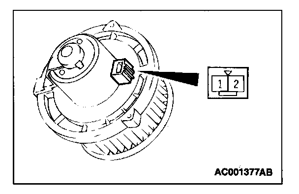 STEP 2. Check the blower fan and motor operation. When battery voltage is applied between the terminals, check that the blower fan and motor operates.