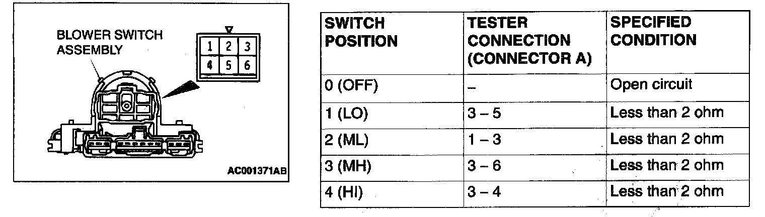 STEP 3. Check the blower switch continuity.