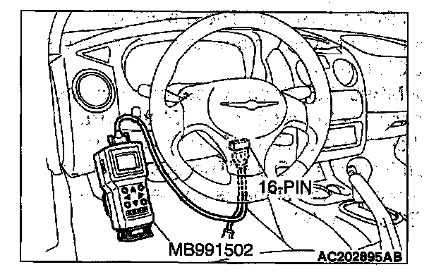 1. Connect scan tool MB991502 to the data link connector.