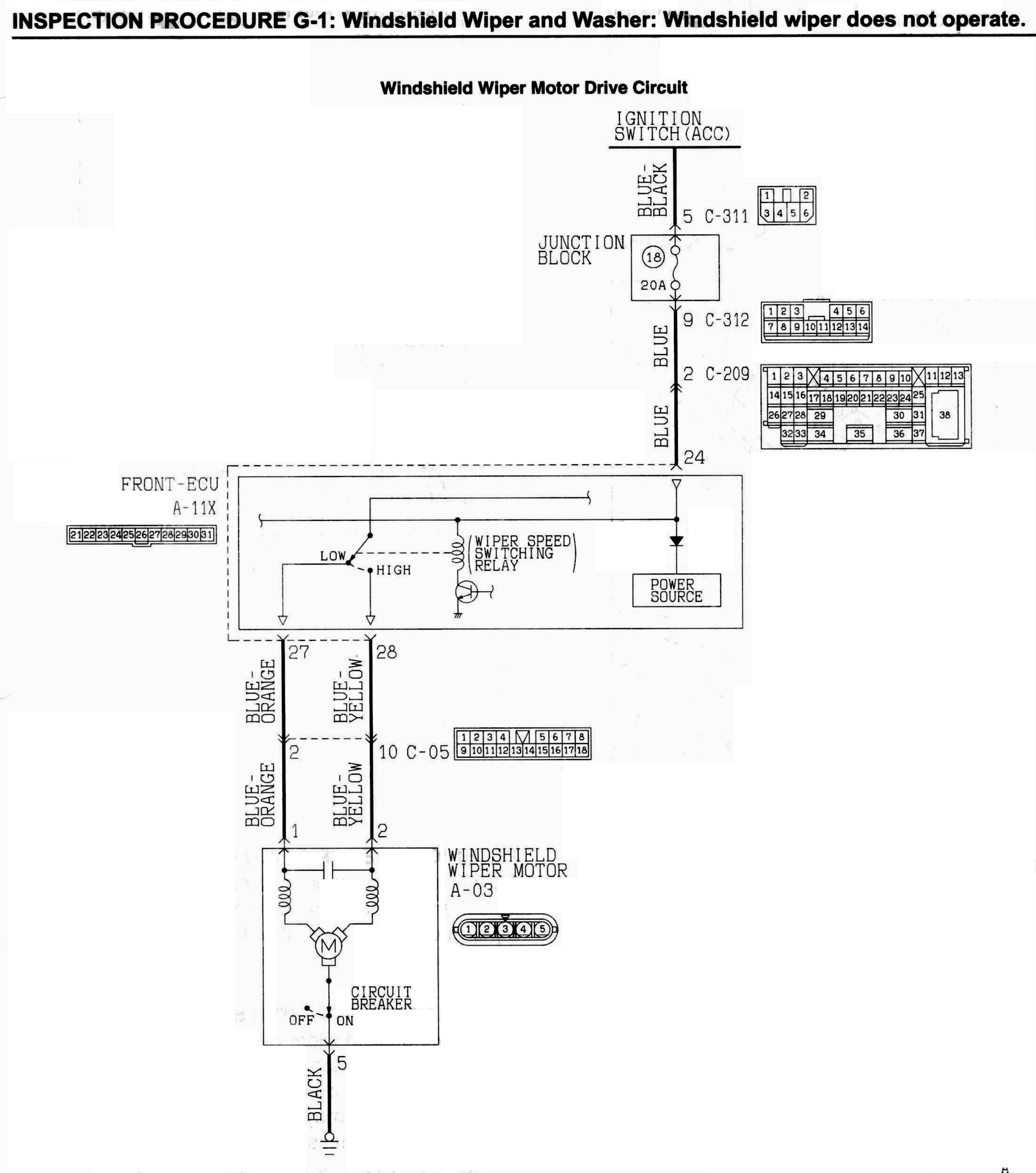 INSPECTION PROCEDURE G-1: Windshield Wiper and Washer: Windshield wiper does not operate.