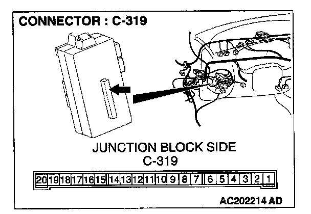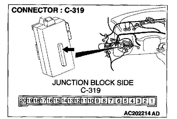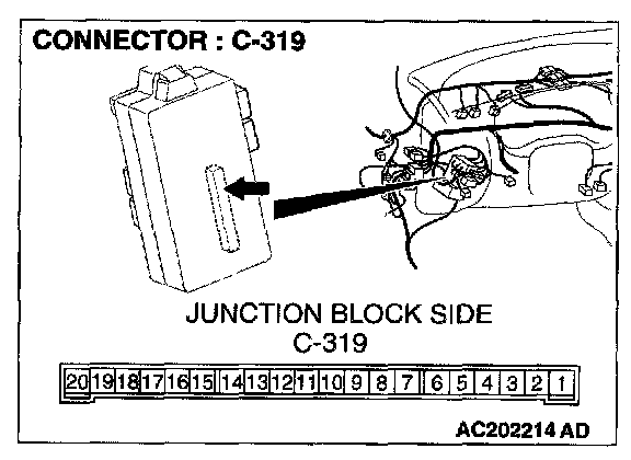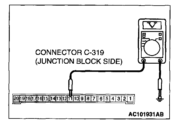 1. Disconnect the ETACS-ECU connector C-319 and measure at the junction block side.