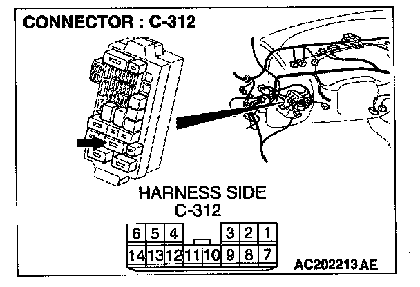 NOTE: Also check junction block connector C-312 and intermediate connector C-209, check the wires. If junction block connector C-312 and intermediate connector C-209 are damaged, repair or replace them. Refer to Harness Connector Inspection.