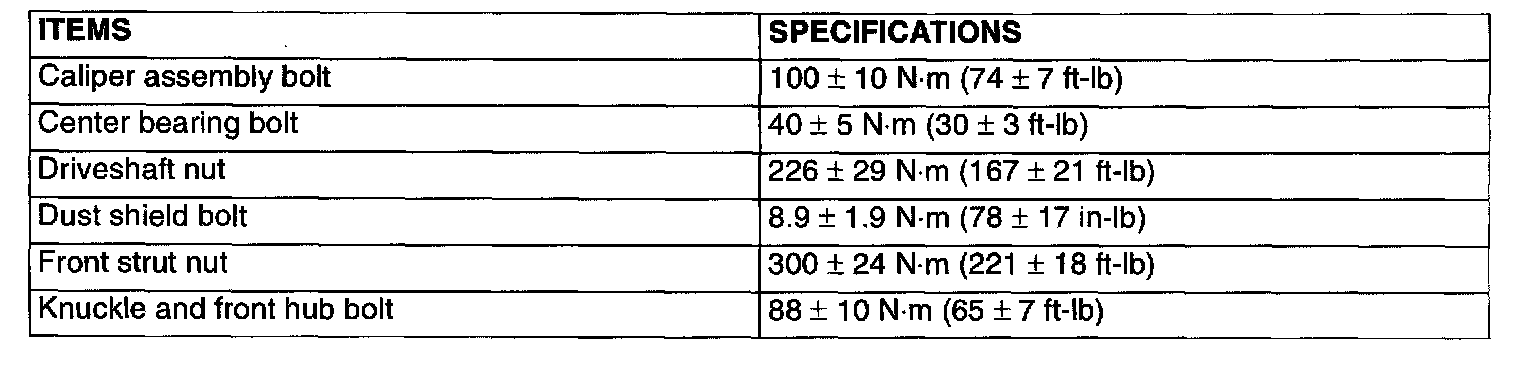 Front SuspensionFastener Tightening Specifications Part 1 of 2