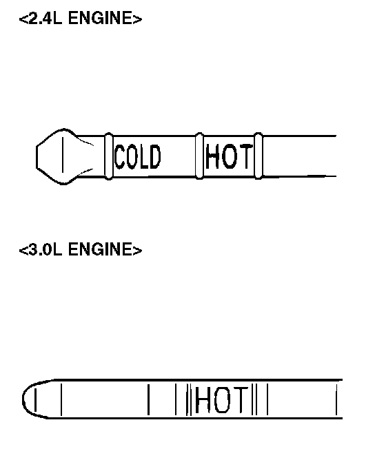 12. Drive the vehicle until the transmission fluid temperature rises to the normal operating temperature [70 - 80°C (158 - 176°F)], and then check the transmission fluid level again. The transmission fluid level must be at the "HOT" mark.
