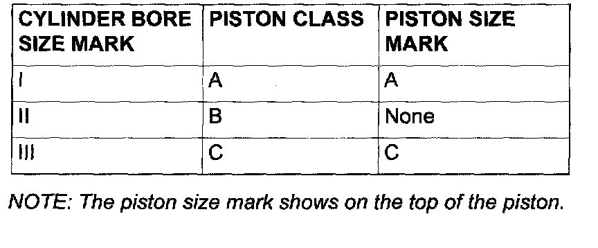 NOTE: The piston size mark shows on the top of the piston.