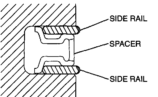 2. Install the upper side rail To install the side rail, first fit one end of the rail into the piston groove, then press the remaining portion into the position by finger.