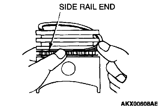 CAUTION: Do not use any piston ring expander when installing the side rail.