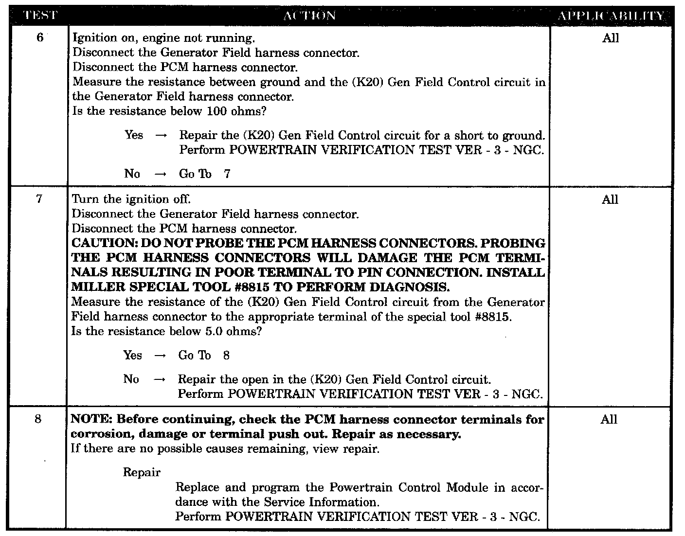 - (K20) GEN field control circuit shorted to ground