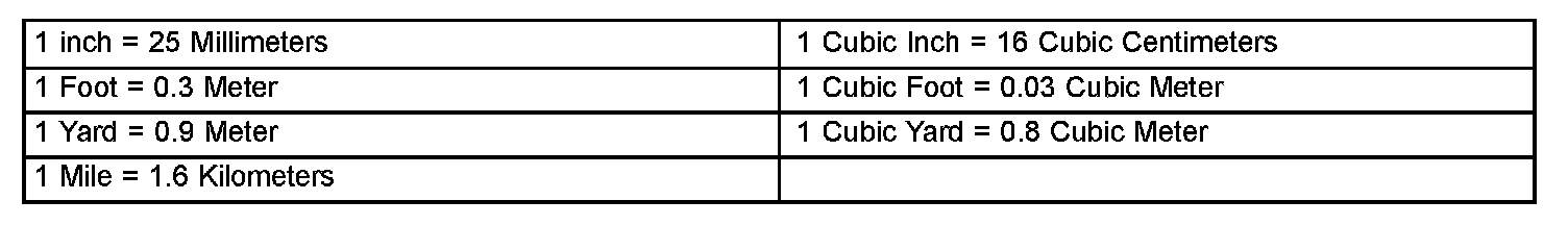 Common Metric Equivalents: