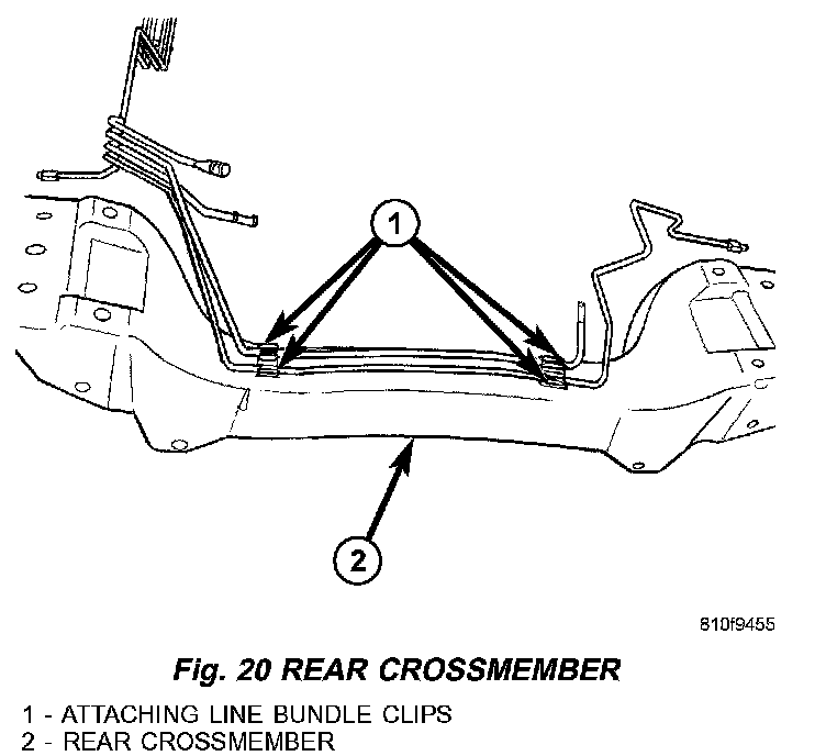 9. Disconnect the clips attaching line bundle to crossmember (Fig.20).