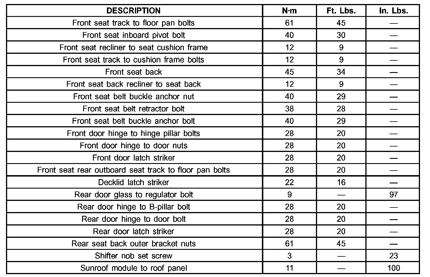 Torque Specifications: