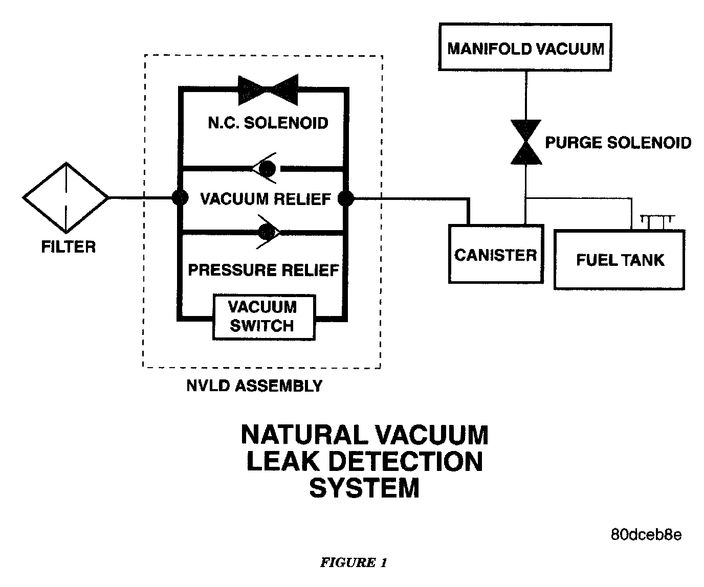 The Natural Vacuum Leak Detection (NVLD) system is the next generation evaporative leak detection system that will first be used on vehicles equipped with the Powertrain Control Module (PCM) or Next Generation Controller (NGC) starting in 20O2 M.Y This new system replaces the leak detection pump as the method of evaporative system leak detection. The current CARB requirement is to detect a leak equivalent to a 0.O20 inches (0.5 mm) hole. This system has the capability to detect holes of this size very dependably.