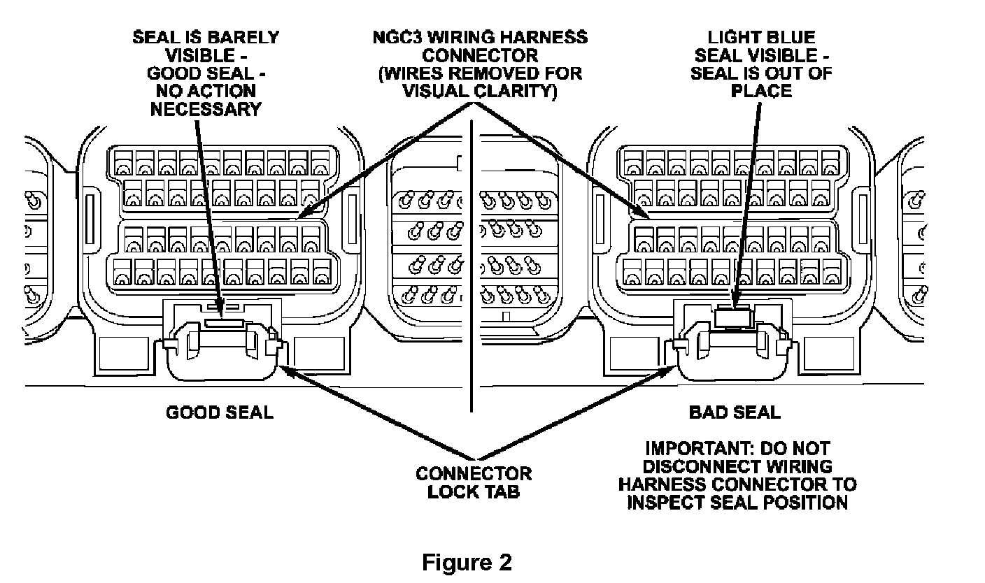 Color photographs of the PCM connector and displaced seal can be viewed on DealerCONNECT. From the Service tab, select "STAR Online", then select "STAR Center News, Documents and Reference Sheets" and then select "PCM Connector Seal Sheet"