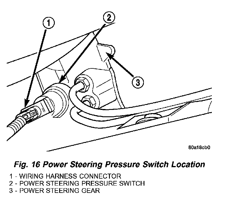 3. Locate power steering pressure switch on back side of power steering gear (Fig. 16).
