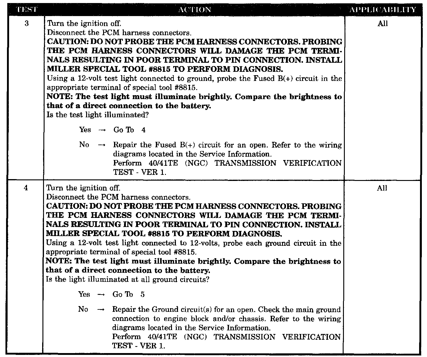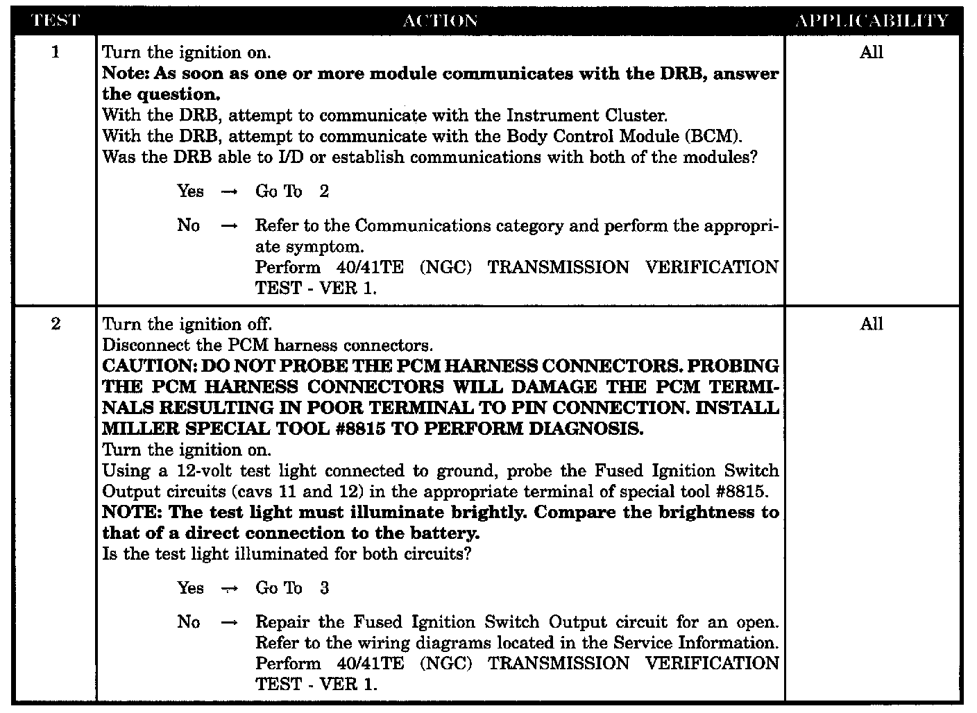 No Response From Transmission Control Module - NGC