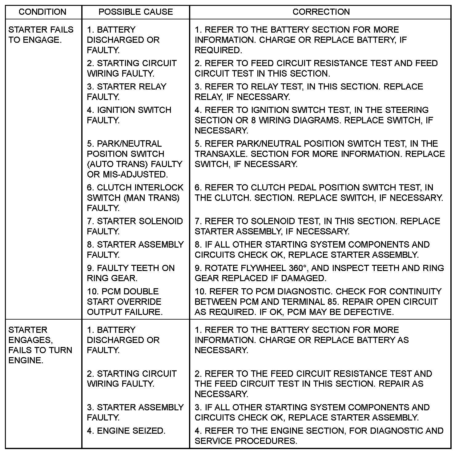 Before removing any unit from the starting system for repair or diagnosis, perform the following inspections: