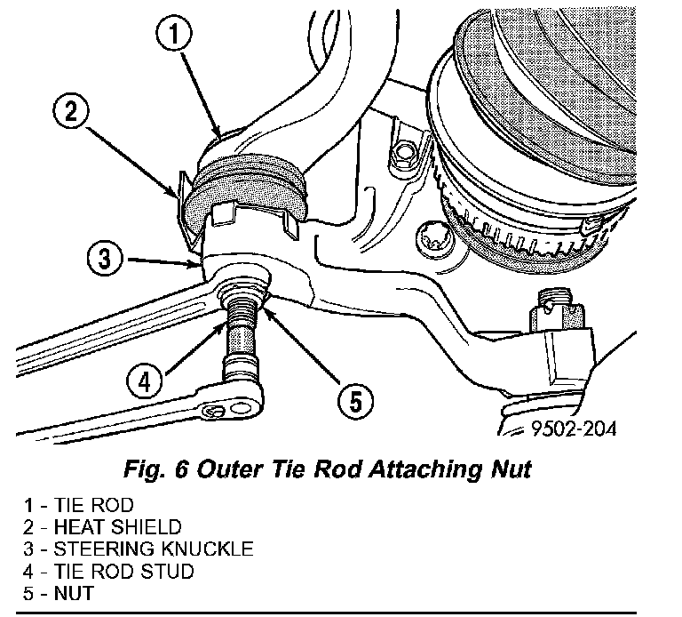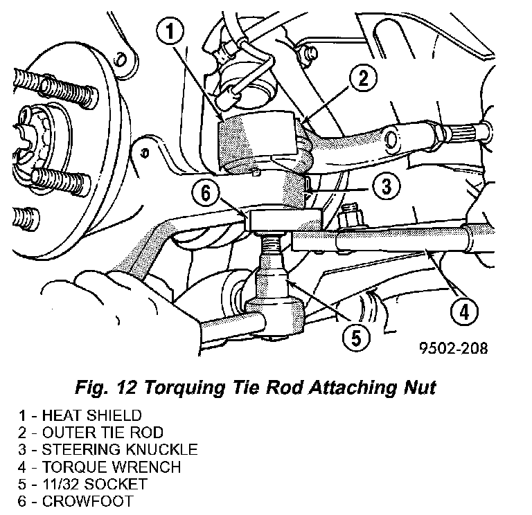 CAUTION: When installing tie rod on steering knuckle, the heat shield (Fig. 12) must be installed. If heat shield is not installed, tie rod seal boot can fail due to excessive heat from brake rotor.