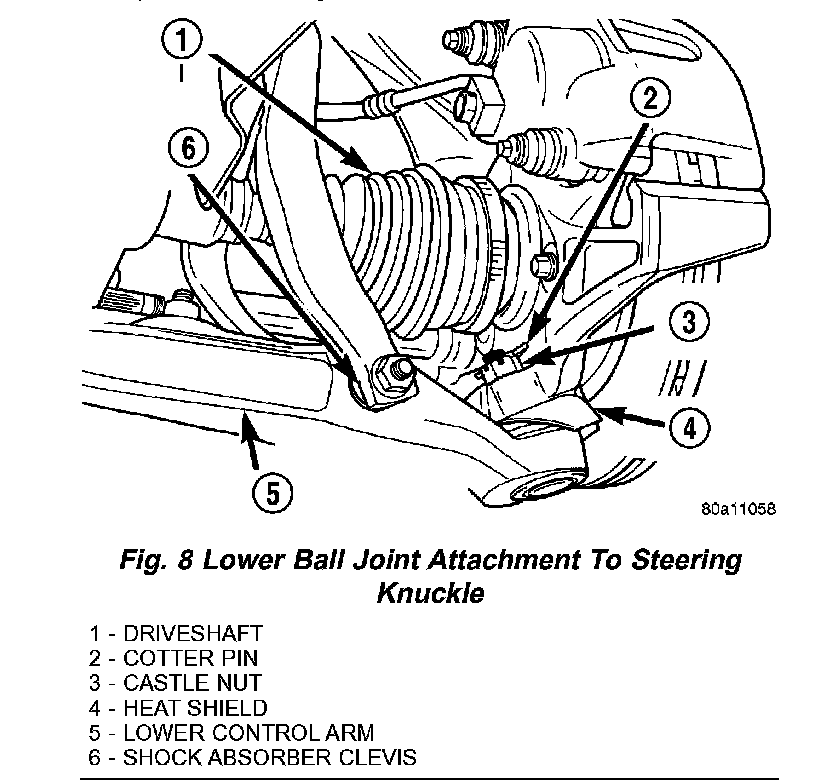8. Remove cotter pin and castle nut from lower ball joint stud (Fig. 8).
