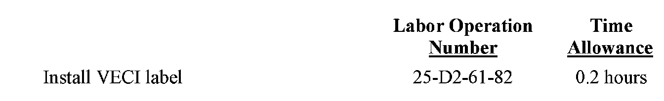A new VECI label must be installed over the vehicle's original VECI label.