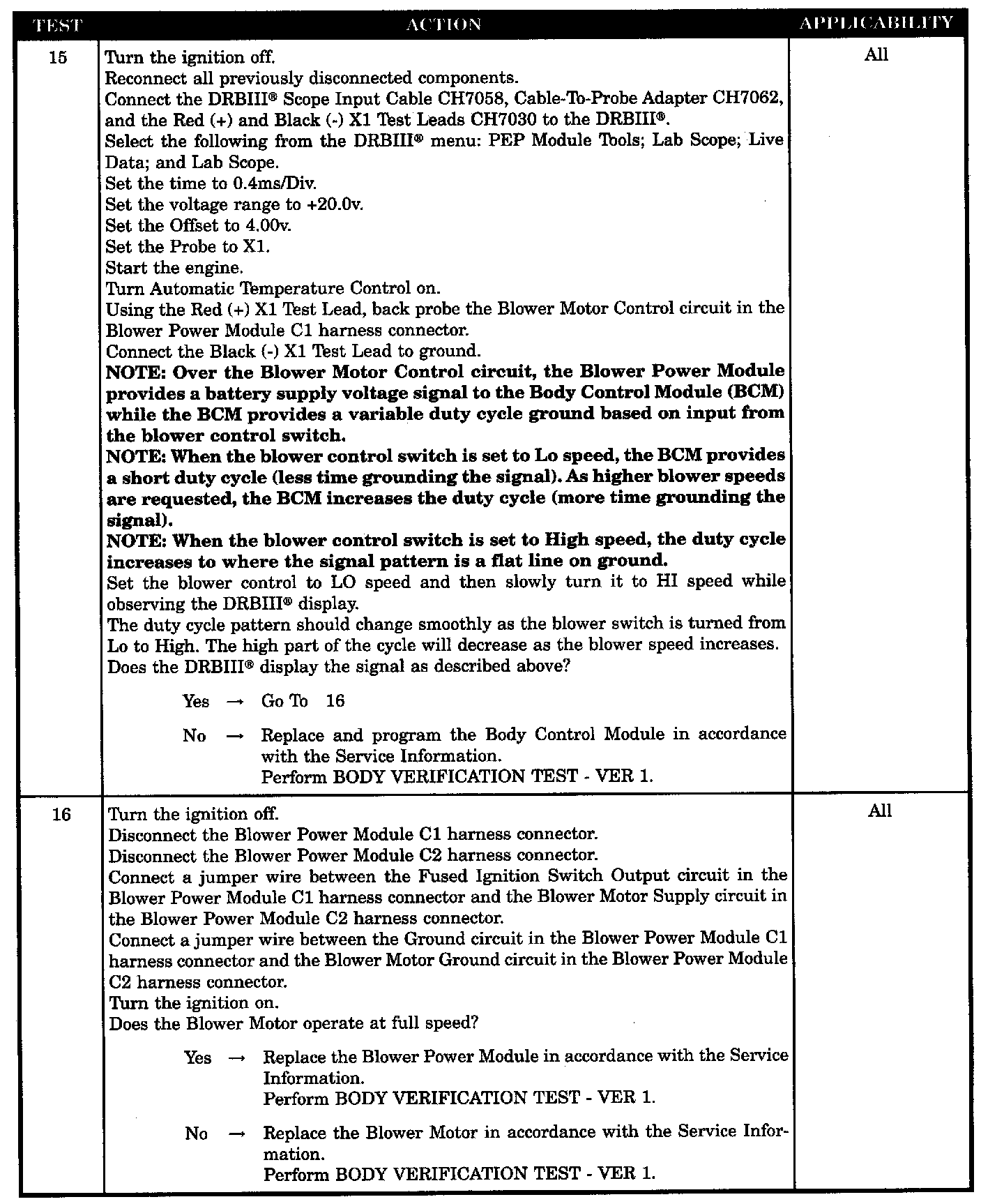 - Blower motor supply circuit shorted to blower motor ground circuit