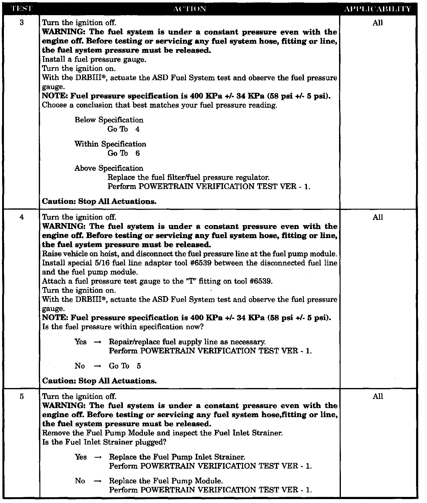 - Fuel pressure out of specs