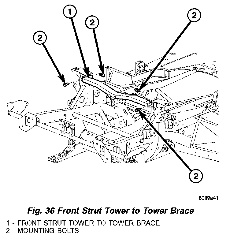 3. Remove front strut tower to tower brace (Fig. 36).