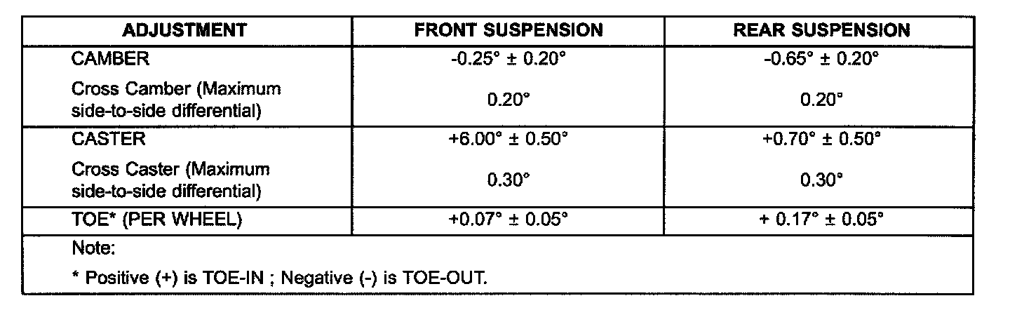 Wheel Alignment Specifications: