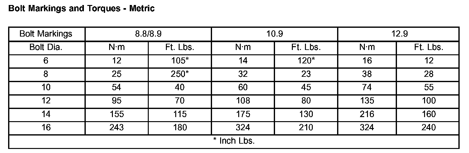 Bolt Markings And Torques - Metric: