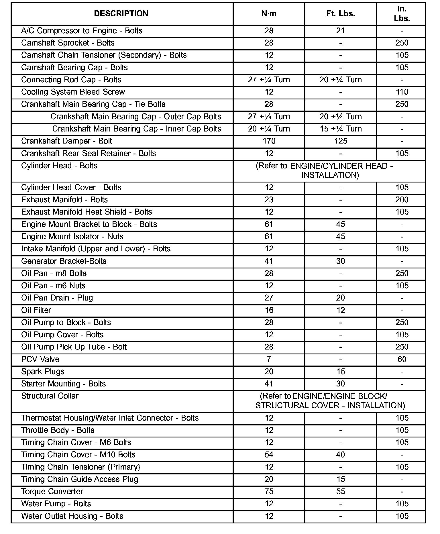Engine Torque Specifications