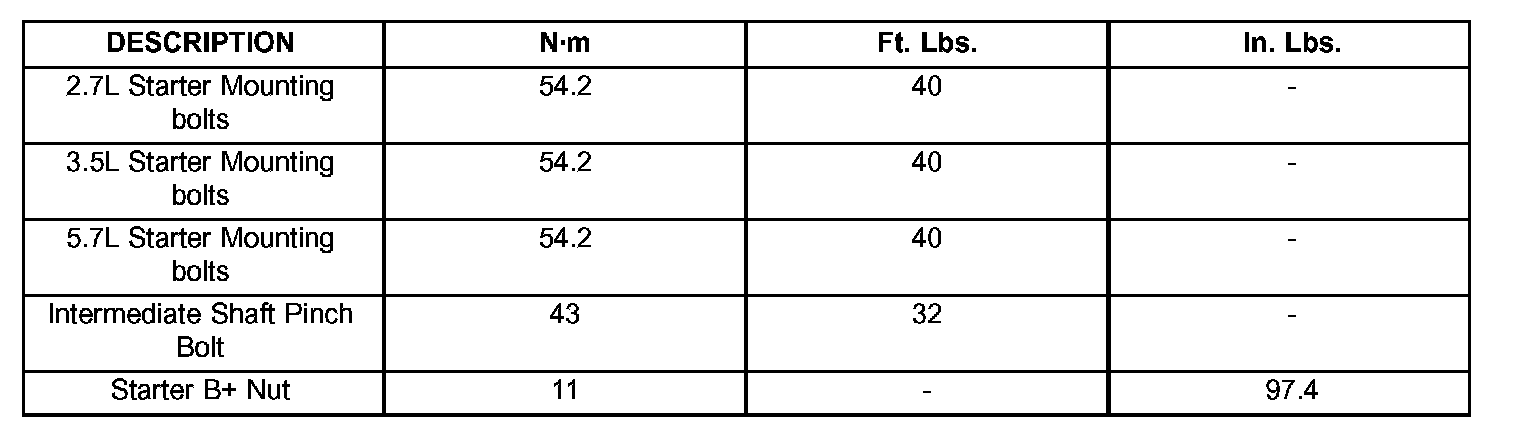 Torque Specifications: