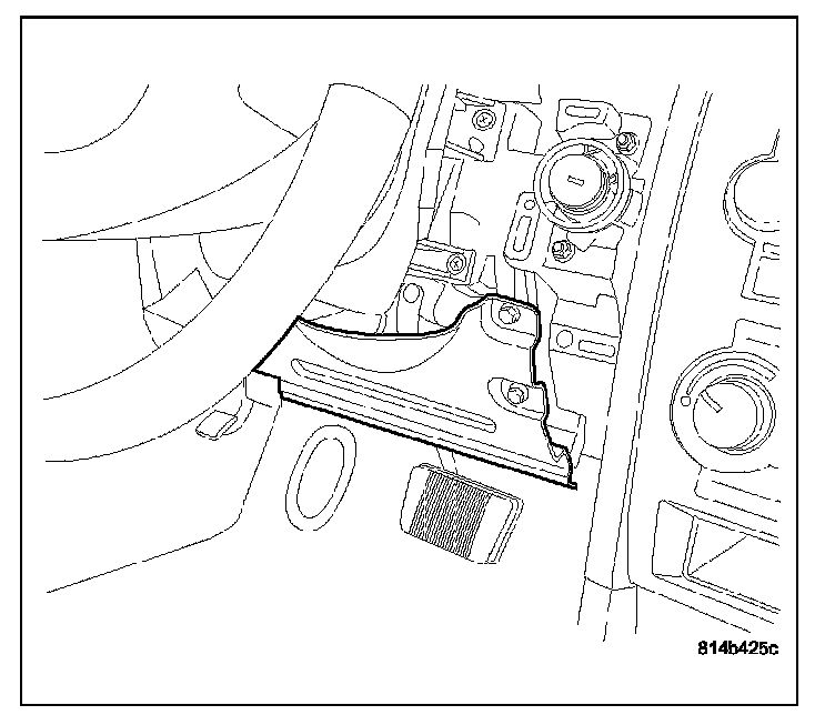 7. Remove the screws that secure the instrument panel steering column cover reinforcement to bracket and remove reinforcement from the vehicle.