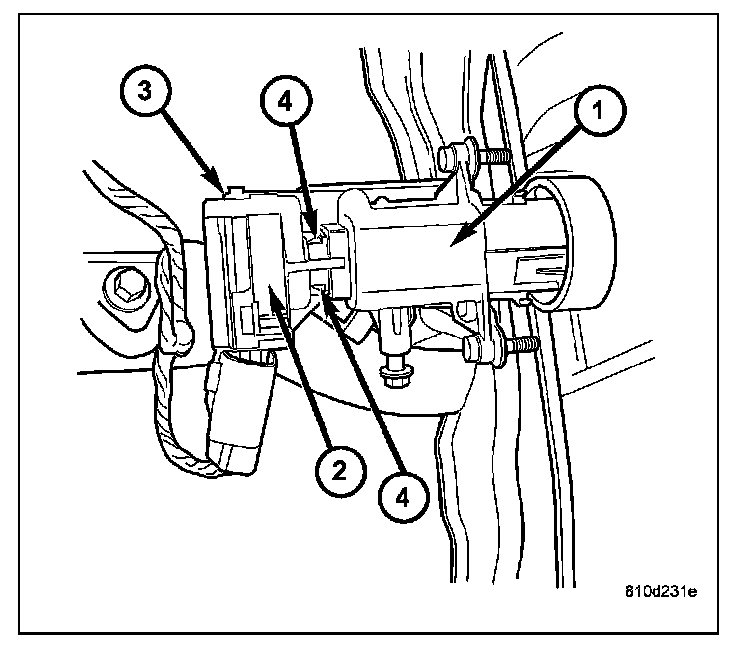 1. A tab on the ignition switch indexes to a notch in the lock cylinder housing. Also, a slot in the end of the ignition switch fits over the shaft in the end of the lock cylinder housing. Use the ignition key to rotate the lock cylinder to align the ignition switch with lock cylinder housing.