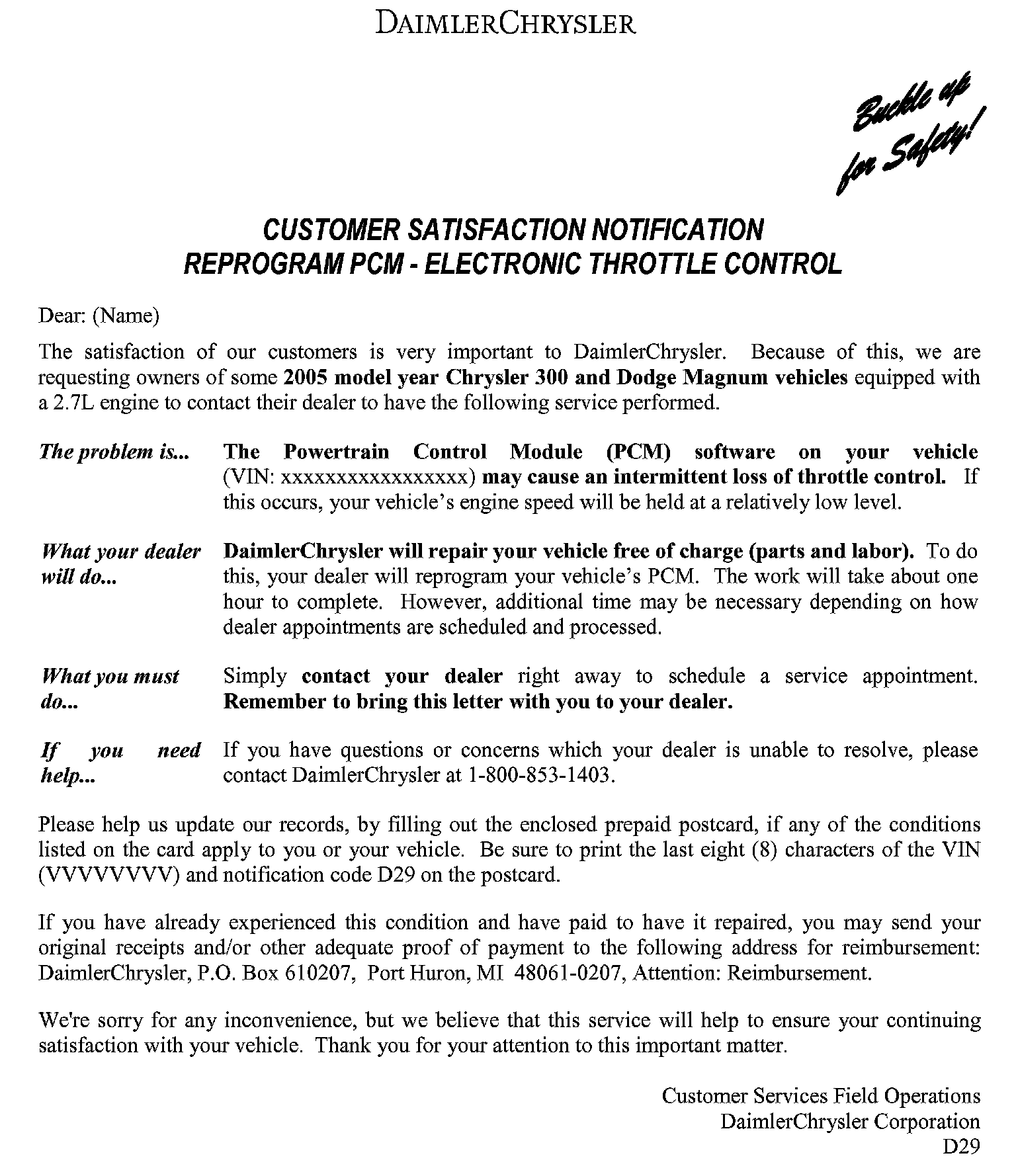 Campaign - PCM Reprogram for Throttle Control