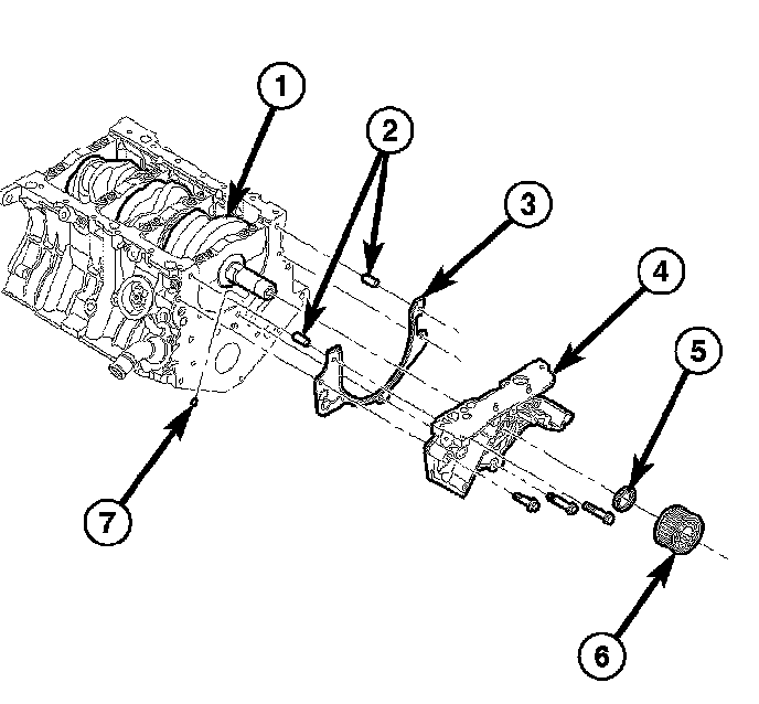 1. Prime oil pump (4) before installation by filling rotor cavity with clean engine oil.