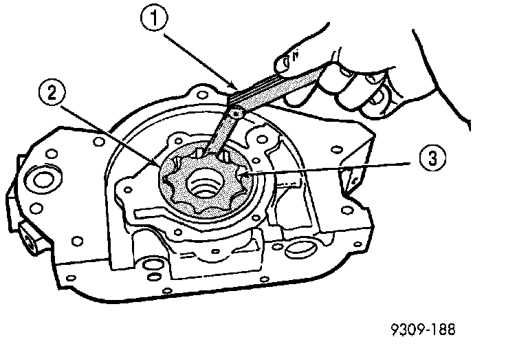 7. Install inner rotor into body. If clearance between inner (3) and outer rotors (2) is 0.20 mm (0.008 inch) or more, replace both rotors.