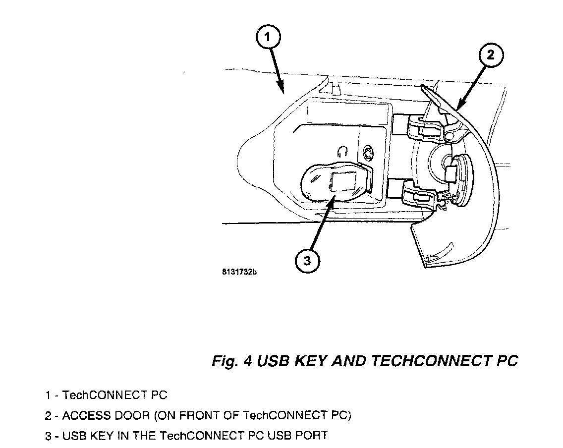 2. Insert the USB Key, into the USB port on the TechCONNECT or equivalent PC (Fig 4).